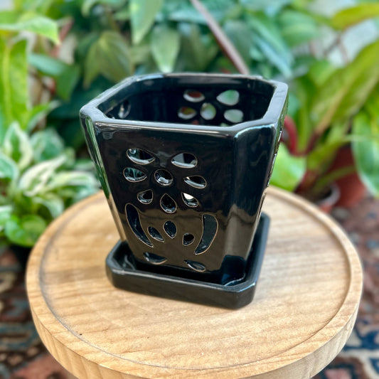 Tall Glazed Orchid Pot