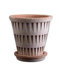 Impressive and structural, the Bergs Pantheon pots have classic sloped sides with impressions that are reminiscent of ancient architecture. Each pot comes with a drainage hole and a matching saucer.