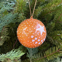 Handcrafted in Kashmir, India, these ornaments are made using traditional paper-mâché techniques for beautiful, detailed craftsmanship. Each piece is artisan-made and measures approximately 10" in circumference.