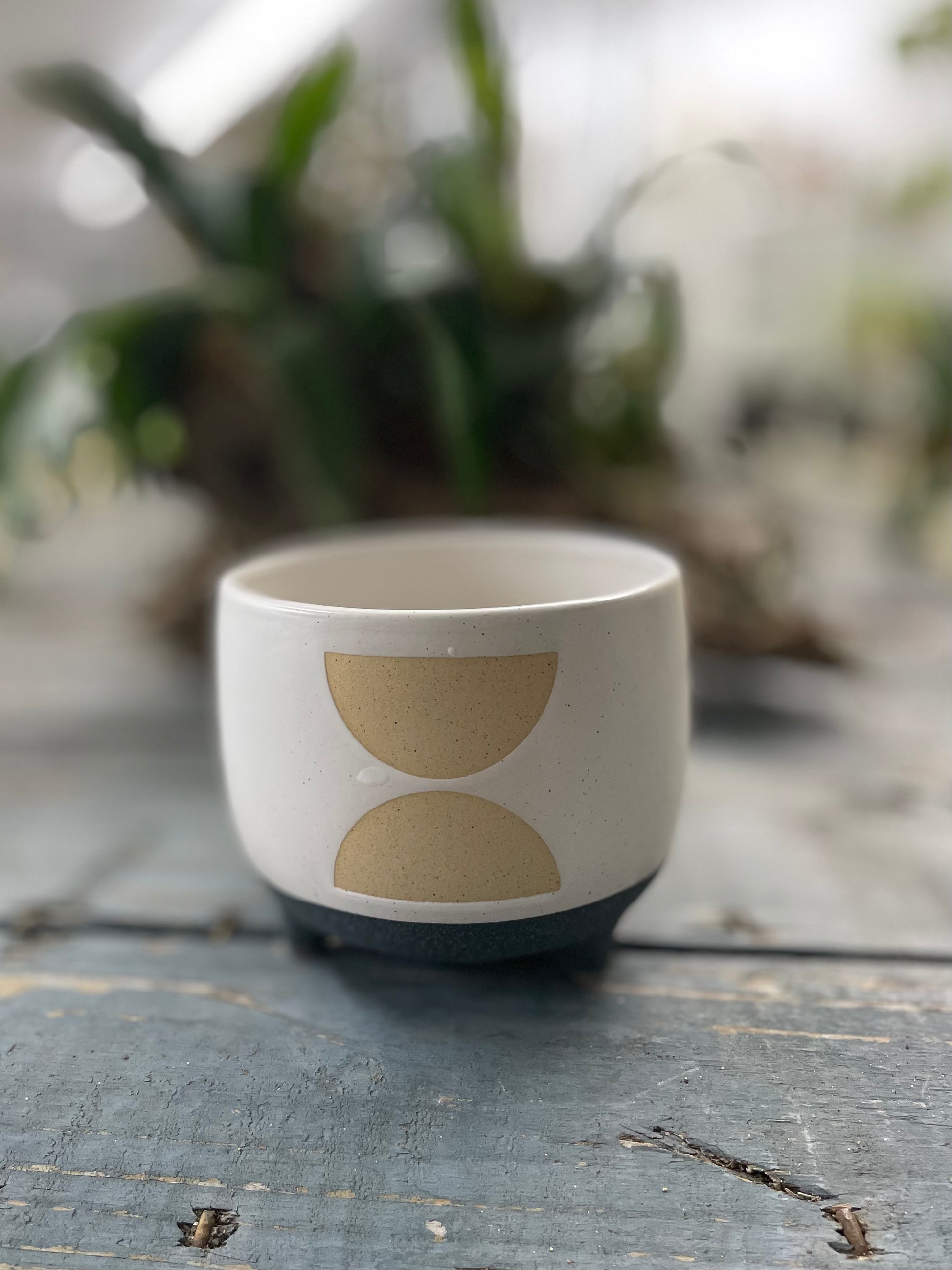 The Hourglass Footed Pot features three different glazes and three mini feet.