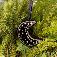 Velvet and Bead Ornament - Crescent Moon
